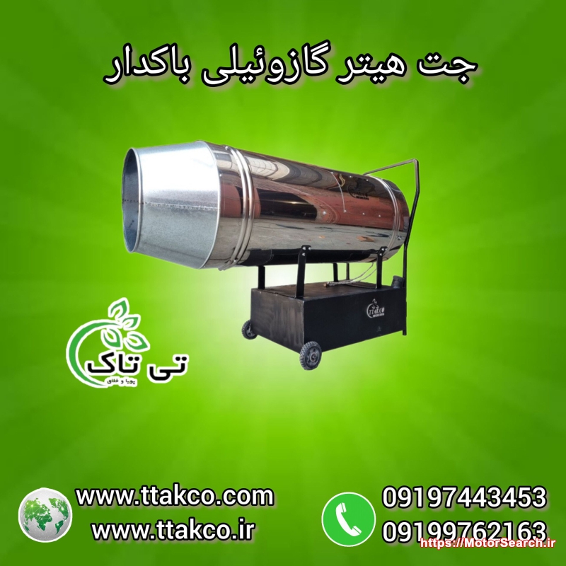جت هیتر دستگاه گرمایشی است که در فضاهای صنعتی و غیر صنعتی استفاده می شود اما عمده استفاده از این دستگاه در بخش کشاورزی و پرورش دام و طیور است. تی تاک تولید کننده دستگاه های گرمایشی و سرمایشی با رعایت استاندارد و قوانین جهانی اقدام به تولید جت هیتر و هیتر با سوخت های متنوع می کند.یکی از این دستگاه های گرمایشی جت هیتر گازوئیلی هزار باکدار است.این جت هیتر با سوخت گازوئیل کار میکند و گزینه بهتری برای مکان های که دسترسی به سوخت گاز و برق ندارند می باشد. این مدل جت هیتر دودکش ندارد و تمام اتوماتیک است.دارای مخزن است و میتواند سوخت بیشتری در خود ذخیره و حمل کند. جت هیتر گازوئیلی بدون دودکش دارای چرخ است و جابه جایی برای افراد را راحت می کند و به آسانی می توانید به هر جا که بخواهید جت هیتر را حمل کنید.وزن دستگاه تقریبا کیلو گرم است. این دستگاه ظرفیت گرمایشی فضای مابین الی متر مکعب را دارد.